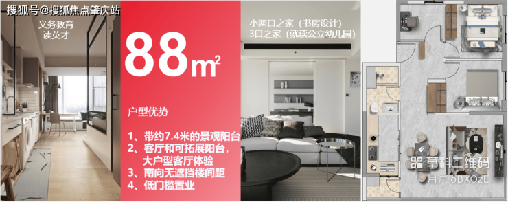 住宅产品有: 88㎡ 三口之家3房 123㎡ 三代同堂4房