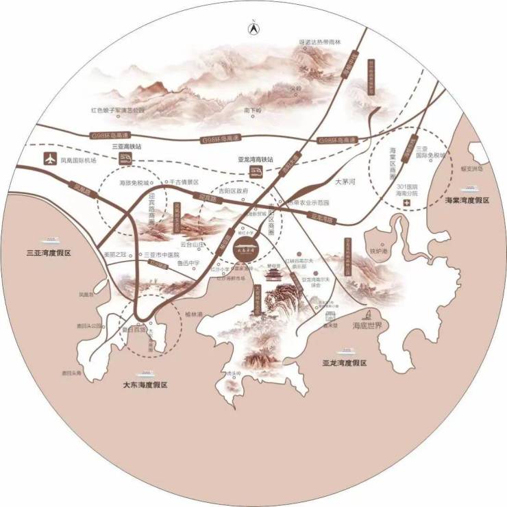 医院:15分钟即可优享三亚市中医院、三亚华侨医院、广州中医药大学附属粤海医院等医疗资源,距离解放军301医院约20分钟车程。