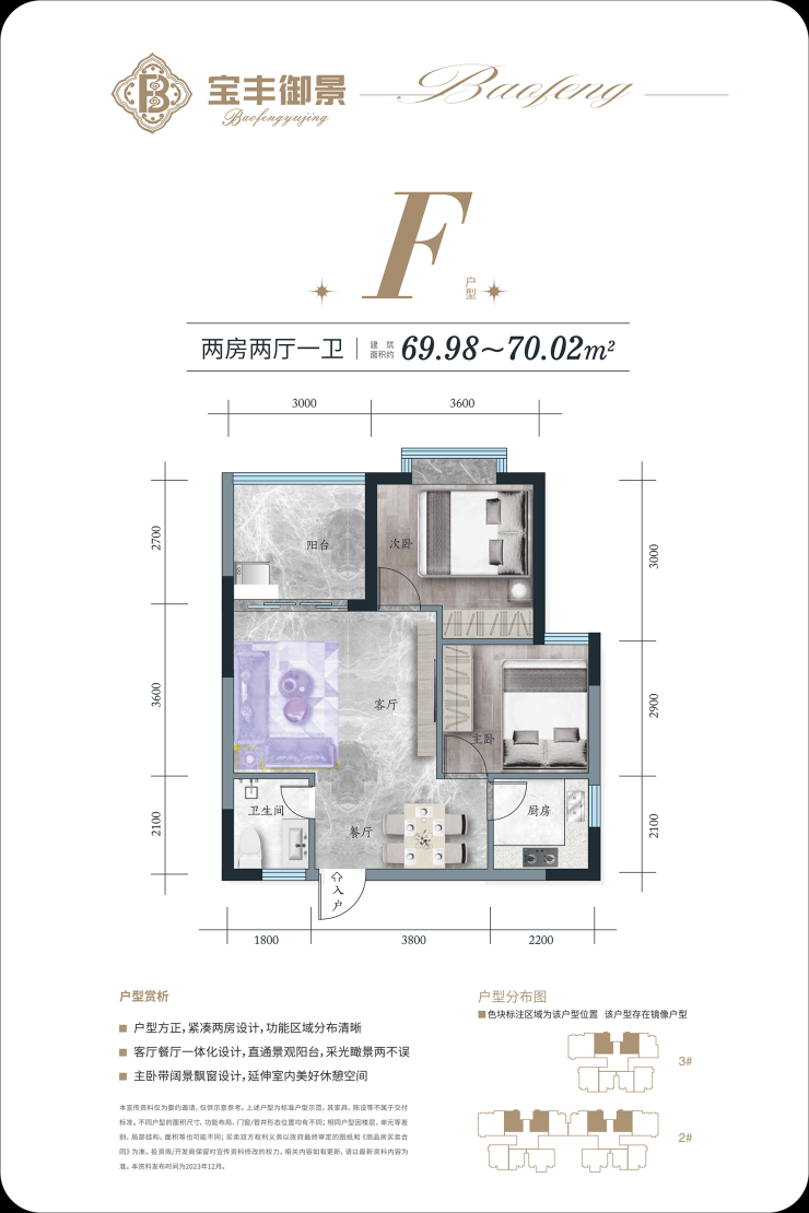『F户型鉴赏 』 二房二厅一卫一阳台