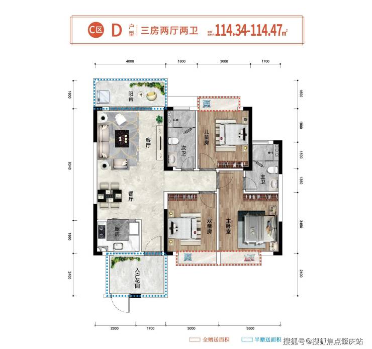 🏖D户型约114.34㎡(三房两厅两卫)