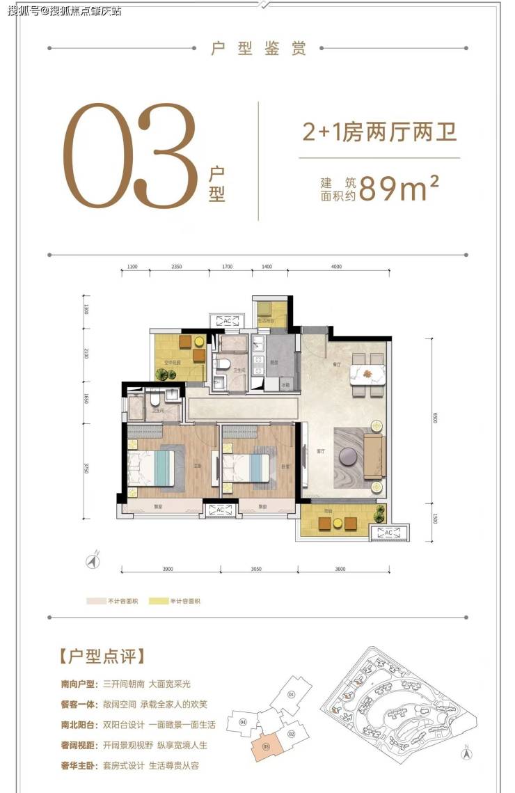25座约89㎡2+1房双阳台南北对流户型