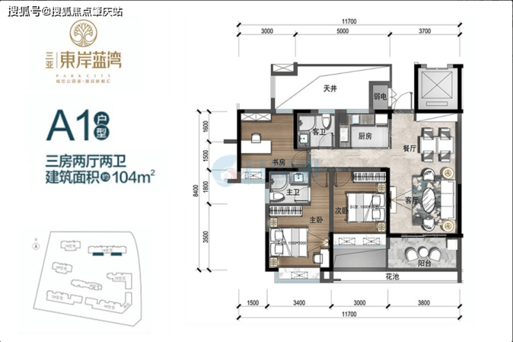 A2户型:105㎡ 阳光三房