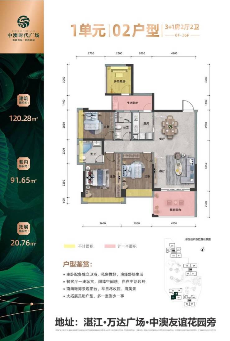 占位湛江CBD轴芯紧邻湛江湾畔北靠万达广场南傍中澳友谊花园稀缺东向瞰海正位兼得自然与繁华公园、商圈、酒店等高端配套环拥举步即享一城精彩