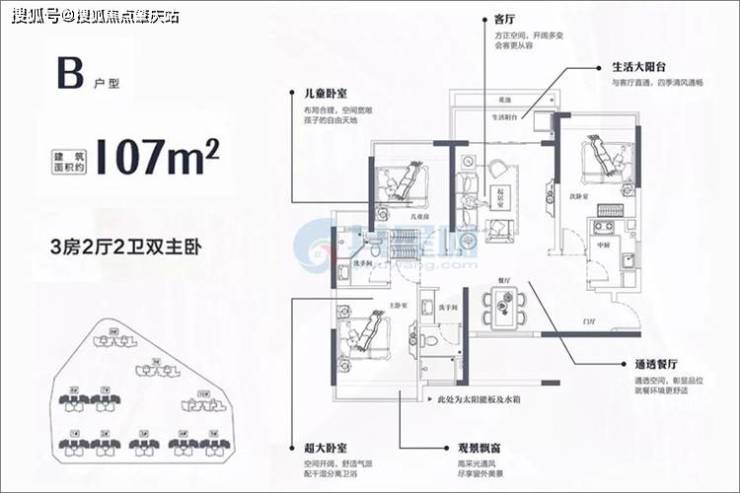 B户型-建面约107㎡-3房2厅2卫