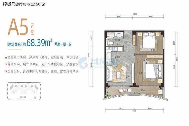 实用小户空间,功能齐全;户户观景阳台,将山海景观揽进室内;厨房、卫生间合理分区,日常生活便捷无忧。