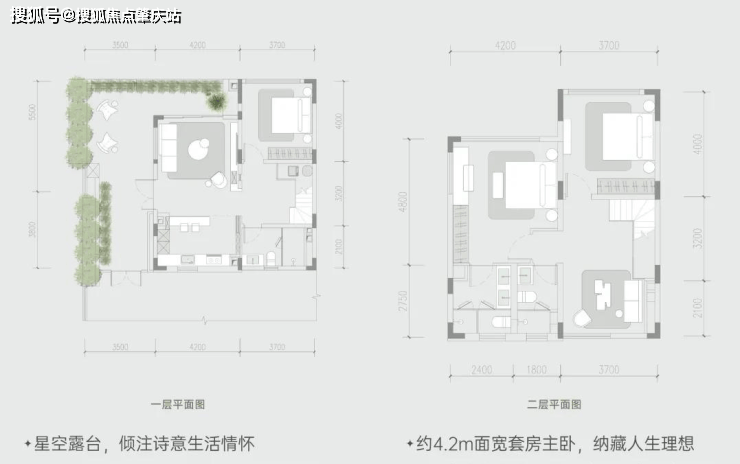 上叠:使用面积约 140㎡,三室三厅三卫一露台。露台空间开阔,可用于晾晒衣物、举办小型聚会,或是打造一个露天的休闲区,夜晚还能在此欣赏星空。