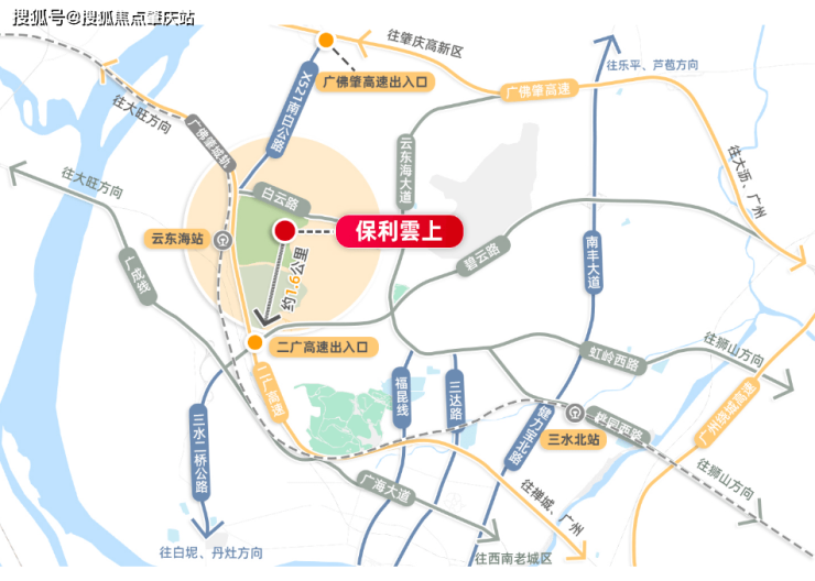 【高速】约1.6公里接驳二广高速,约4公里即达广佛肇高速,畅达广佛肇;
