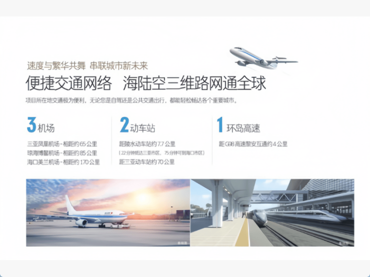 项目距三亚市区约60公里,驾车50分钟左右,坐动车23分钟。