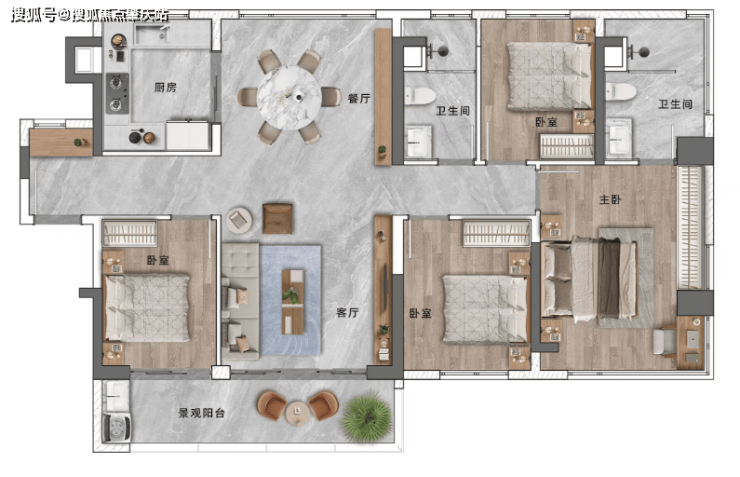 @ 尊崇主套丨套房式主卧布局,270°飘窗观江揽园