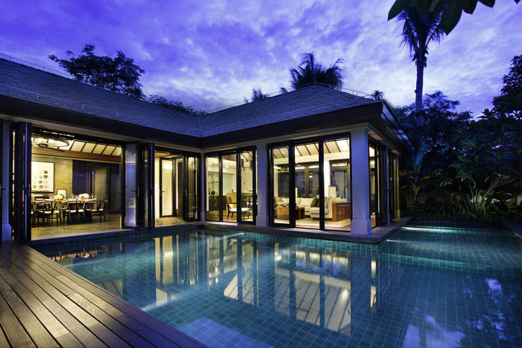 •整个产品设计主要由台北顶级设计单位输入,室内设计为大匀国际,景观设计是翰翔景观,项目为中式简约风格,设计上精益求精并且有思想和灵魂,建筑规划采用大聚落式设计,复制了古村落的排布格局,追求一种宁静深远、返璞归真的度假感受,同时又采用了小组团设计,8-12栋别墅自成一组团,这样的内聚空间,体现出的是对人性的关怀,小区内部采用高度人性化的人车分流设计,空间高度私密。