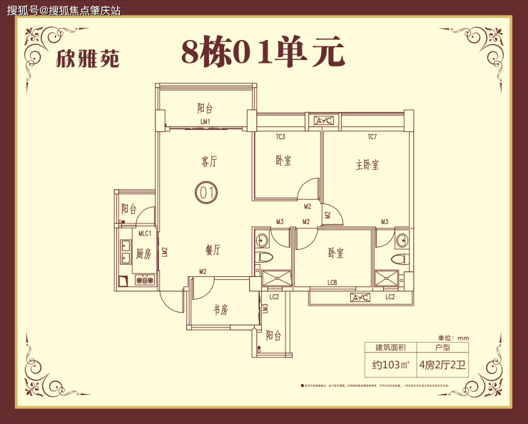 在售楼栋与户型面积:建面约93-113㎡三房、四房