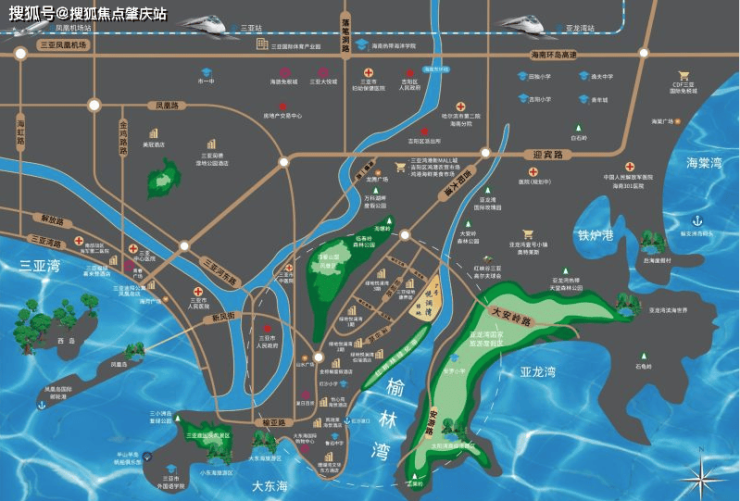 医疗:榆林海军医院、三亚市儿童康复中心、海棠湾 301 医院、广州中医药大学附属粤海医院等环伺。