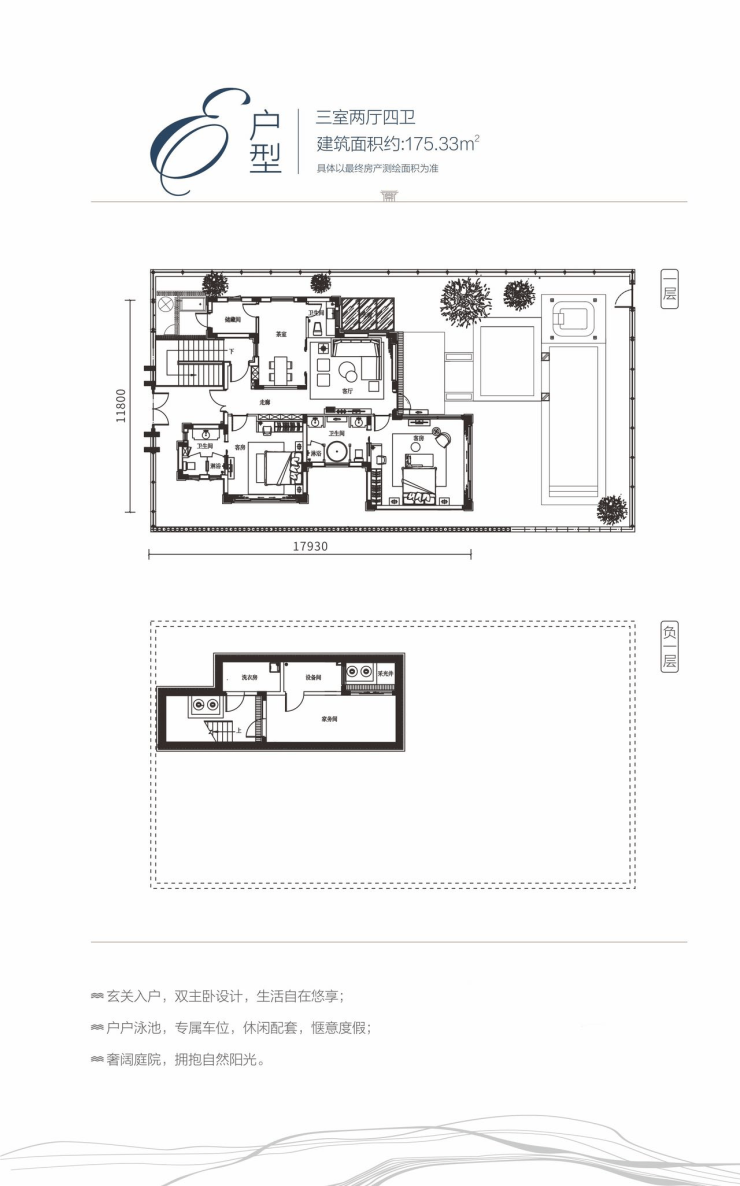 E户型:三室两厅四卫 / 建面约175 ㎡