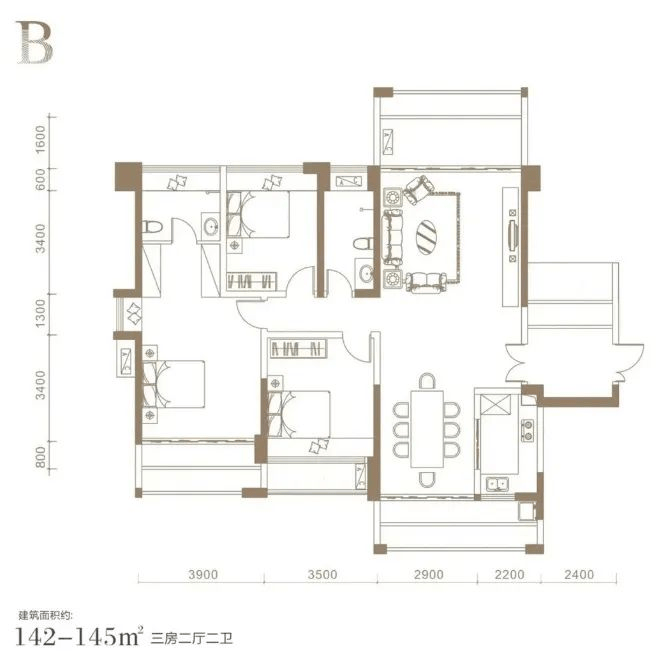 户型种类:有 112-116㎡、142-145㎡的三房,以及 160-163㎡的四房。