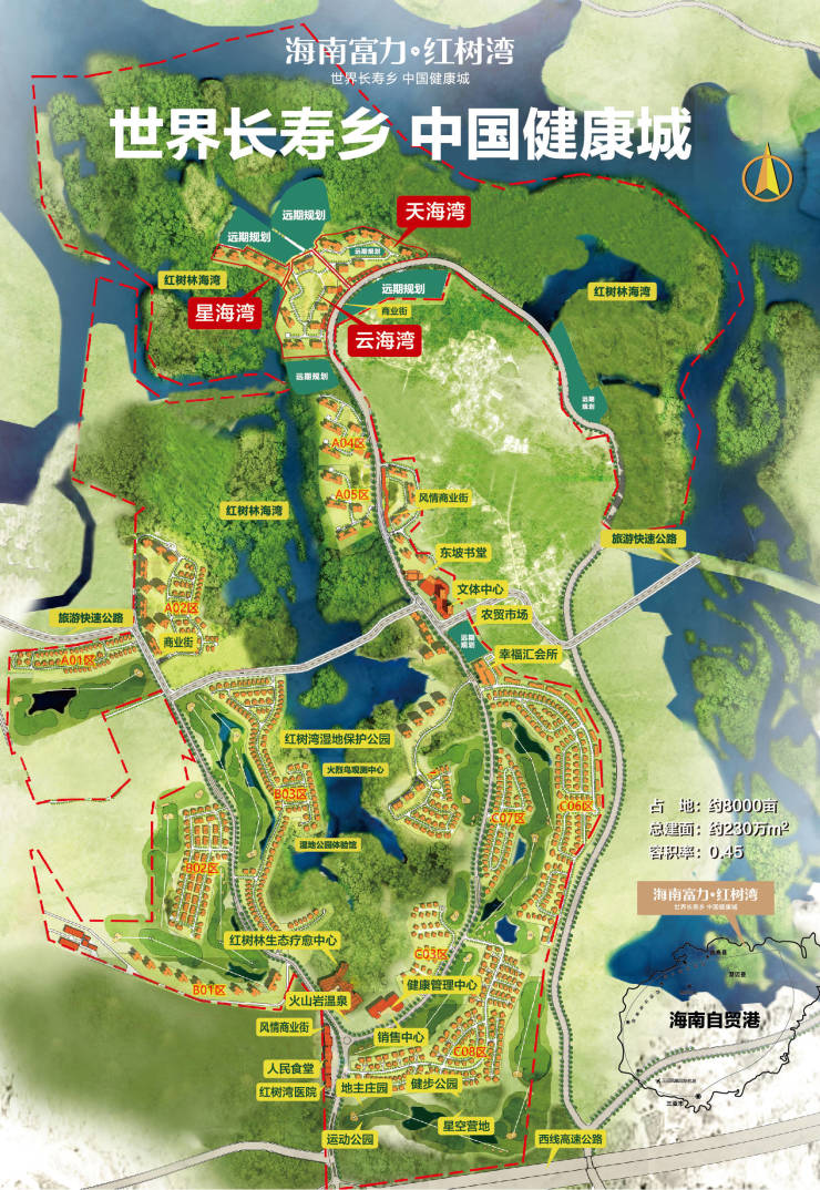 ?海南富力红树湾项目占地约8000亩,项目产品线丰富,涵盖双海湾景观高层、商铺等,建筑造型美观,设计科学合理,并拥有红树林湿地保护公园、完善的医疗服务、多场景运动场所等20大醇熟健康配建,致力打造为学休养一体化的健康大城。