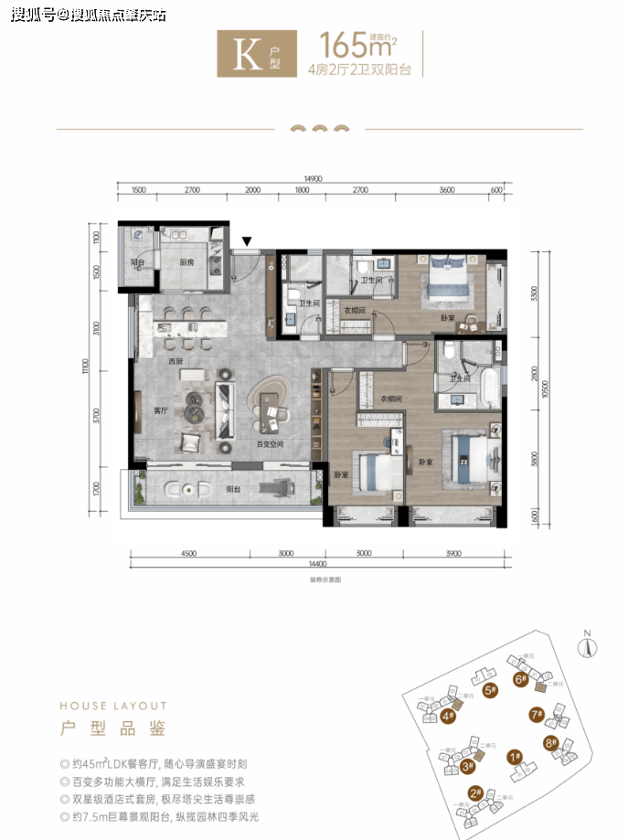 户型亮点:全幕瞰景大平层