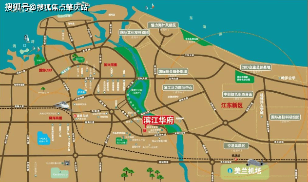 项目地址:海口市琼山区椰博路 65 号,位于滨江西路南段,与江东新区隔江相望,椰海大道、新大洲大道、滨江路三条主干线环抱。