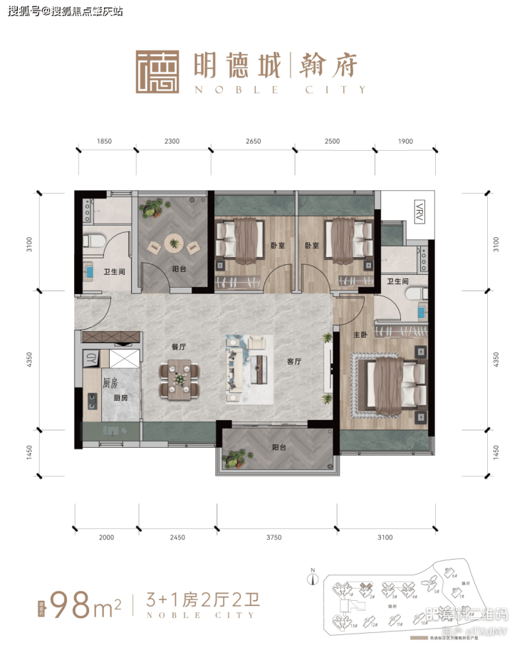 明德城总建面超100万㎡,由六个组团组成,集高端住宅、商务、商业、教育、休闲、生态等城市功能模块于一体的大型综合体项目。