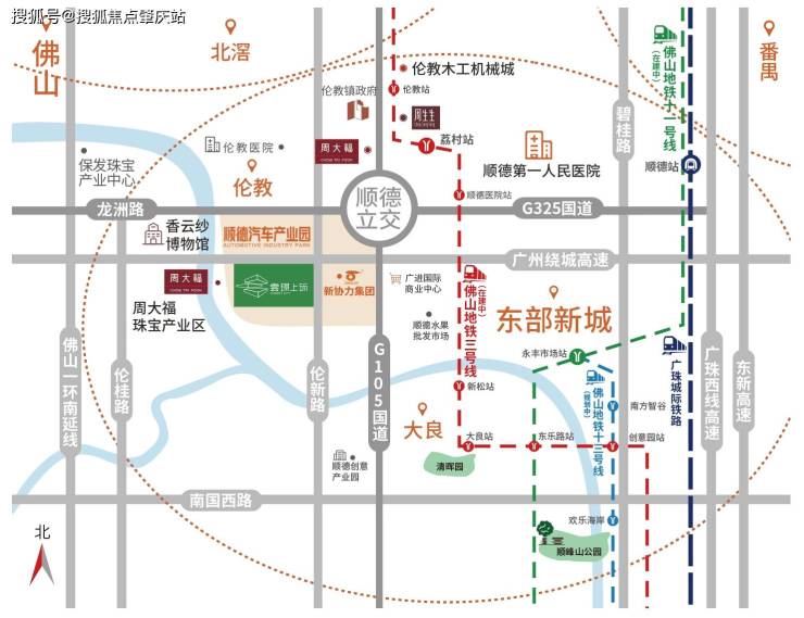 四轨道出行:佛山地铁3号线(预计2022年试运,荔村站3站达北滘新城站,8站可到广州南站)、佛山地铁11号线(预计今年9月动工)、佛山地铁13号线(规划中)、广珠城际铁路(顺德站)。