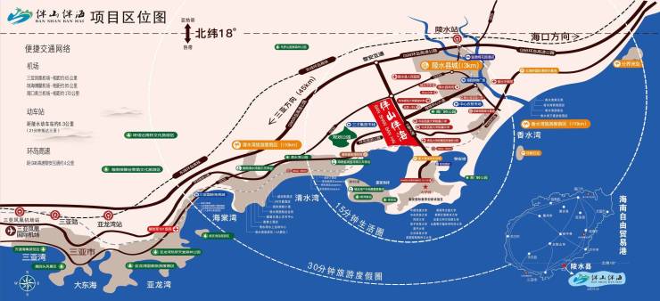 伴山伴海项目位于北纬18°绝版黄金海岸,自贸港战略发展先导区——陵水黎安。坐拥于清水湾旅游度假区、陵水县老城区和黎安国际教育创新试验区三区交汇的核心位置。