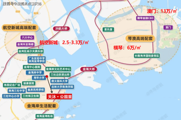 🌟 [横琴后花园 金海大桥旁] 在澳门开发高度饱和,且横琴可开发面积仅有区区30㎞的前提下,雄踞金海岸大桥桥头堡(2022年通车),20分钟通达琴澳的金海岸将作为承接琴澳一体化住宅及生活配套外溢需求,实现居住在金海岸、工作在横琴、澳门的生活;并且港珠澳大桥的西延线距离项目5分钟,顺接国际一小时生活圈;