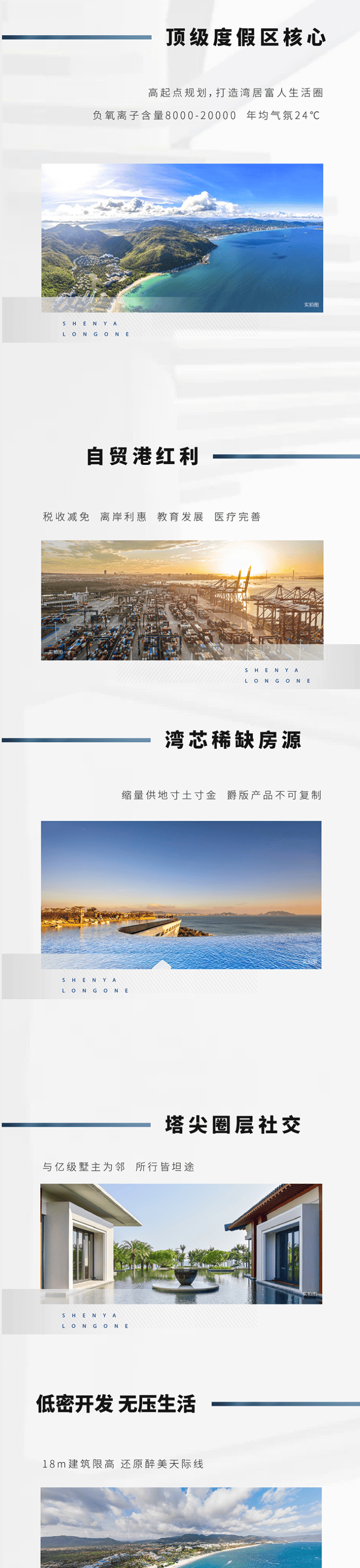 圈层优势明显:作为亚龙湾绝版地块项目,定位高端,能够帷幄塔尖圈层,坐拥亿级社交。