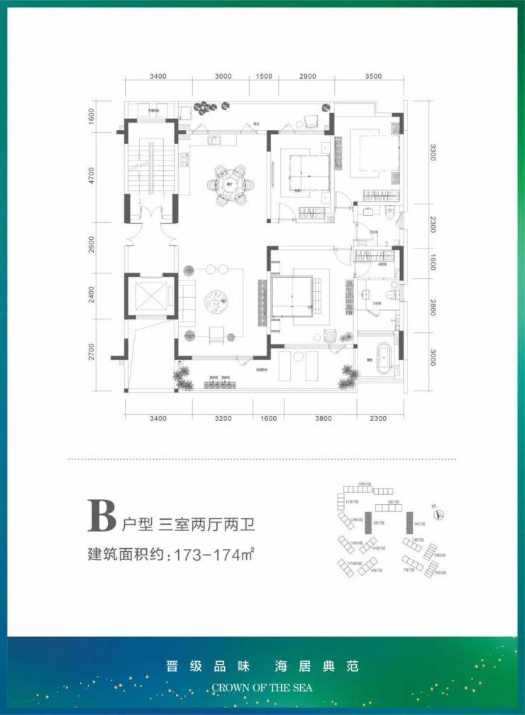 三房两厅两卫 :173 ㎡