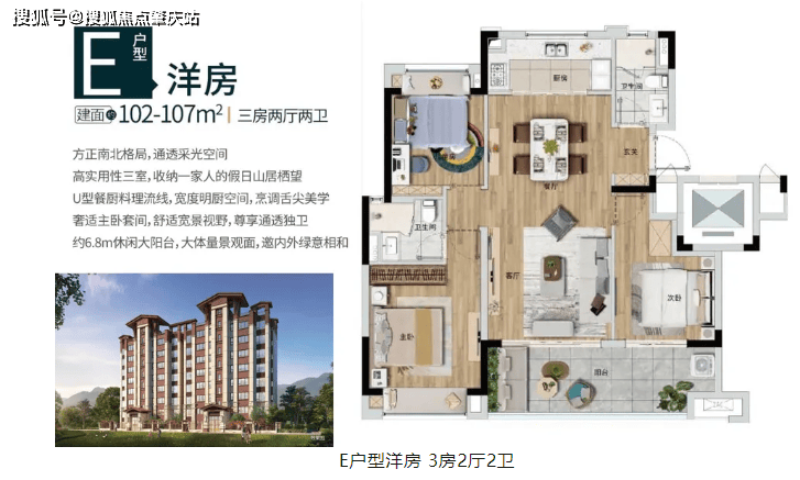 洋房:建面约 102-107㎡,三房两厅两卫。