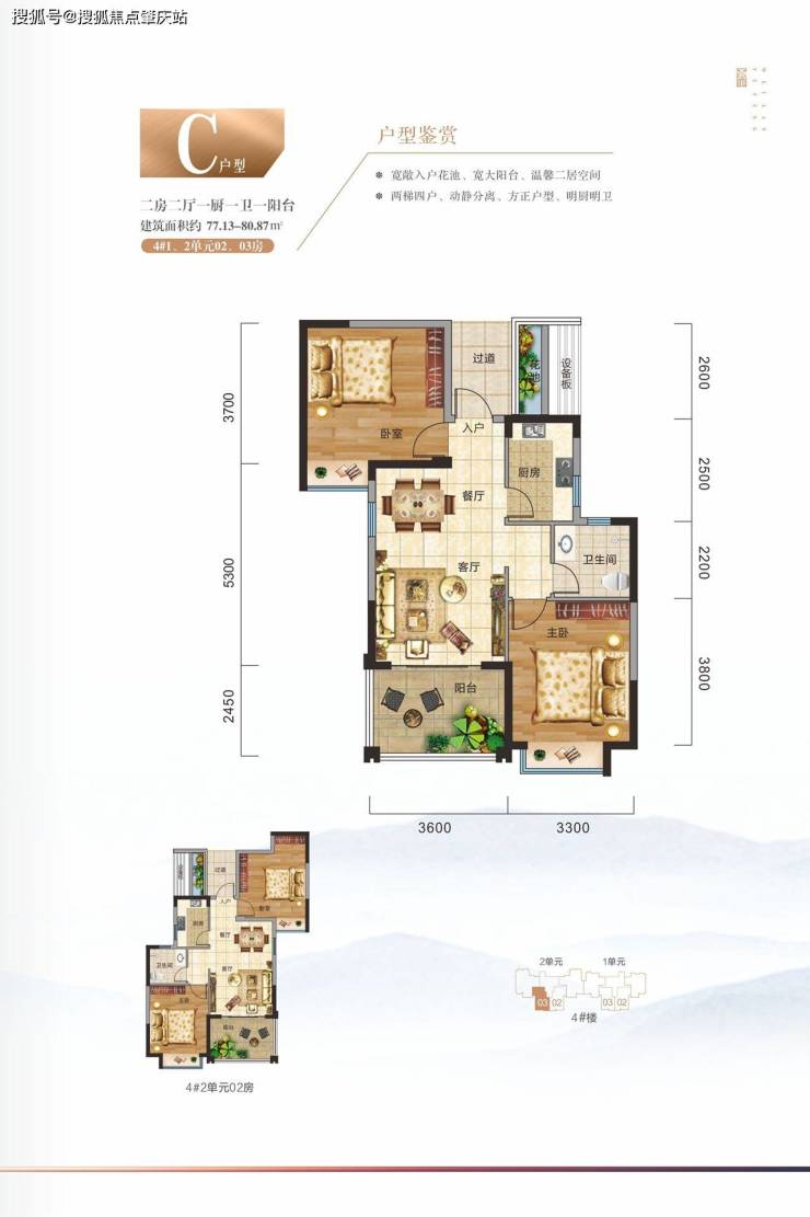 ·住宅户型:住宅78-80㎡坐北朝南二房二厅、