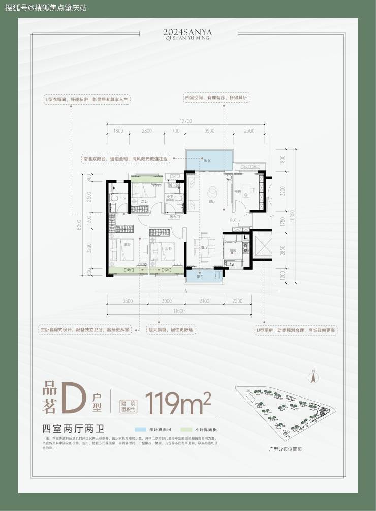 ?品茗 D户型-建面约119㎡ 四室两厅两卫