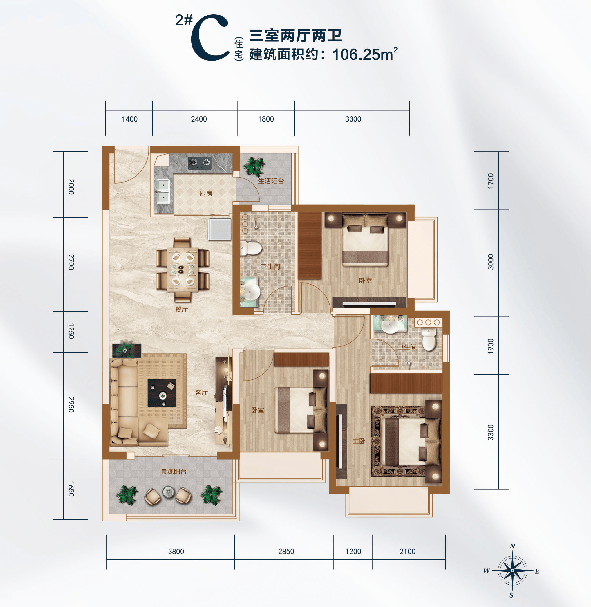 🌟面积:106-117㎡三房两厅两卫双阳台