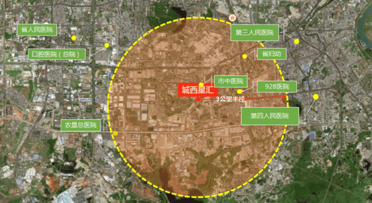 3公里范围内有:农垦总医院、市中医院、928解放军联勤医院、省妇幼保健院等医院贴身护航;5公里范围内汇聚省人民医院、第三人民医院等7家甲等公里医院,真正24小时健康呵护。