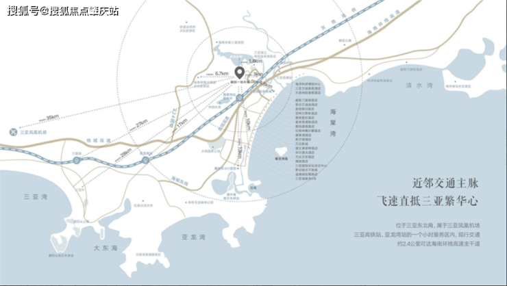 交通配套:位于国家海岸海棠湾北区,直线离三亚凤凰机场 35 公里,直线距离三亚高铁站 27 公里、直线距离亚龙湾站 17 公里,直线距离 2.4 公里可达海南环线高速主干道。