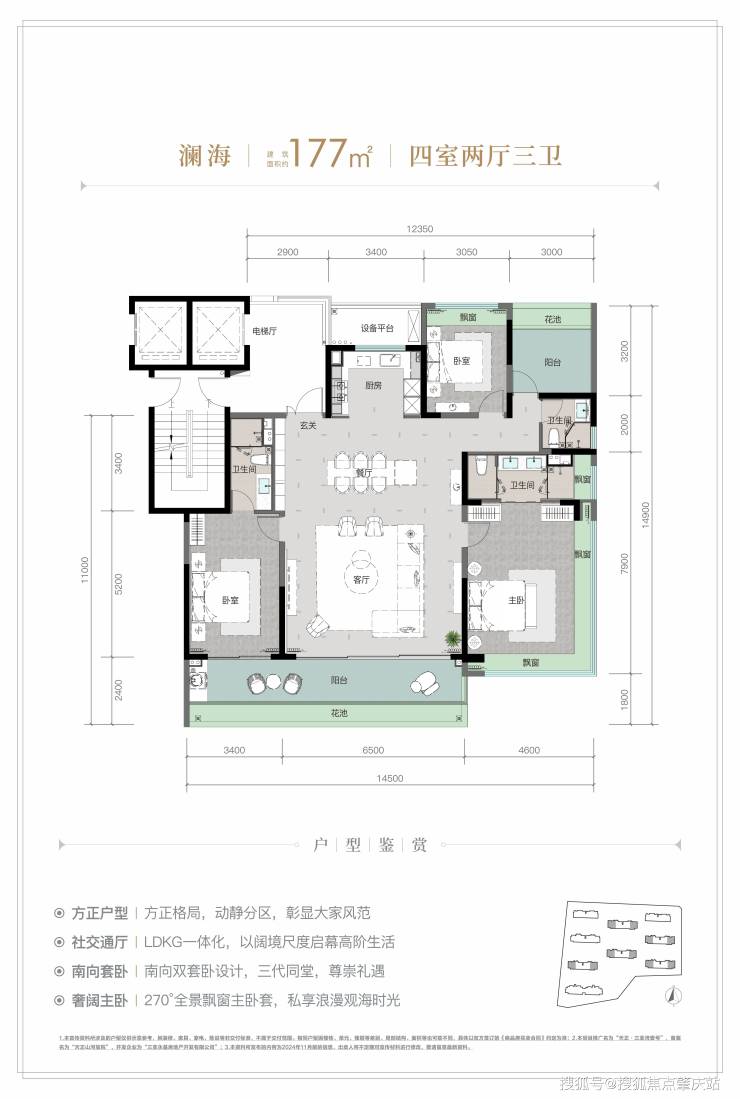 规划建筑面积约126-213㎡观海奢装大平层,约3.1米阔绰层高,部分户型创新设计270°全景飘窗主卧套、四开间朝南等,全成品高标奢装,营造全新舒居体验。