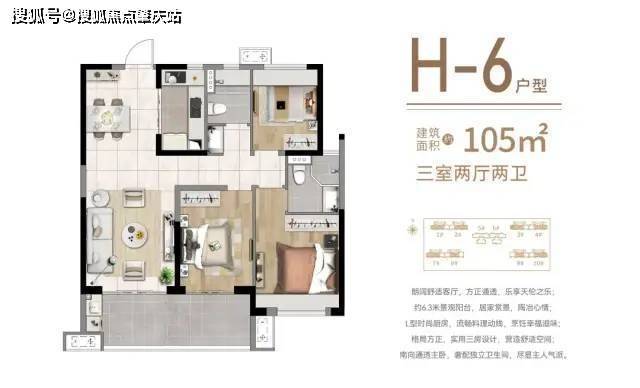 户型亮点:南北通透、全明格局,主推105-140㎡三至四居,配备奢阔阳台、双开门电梯。