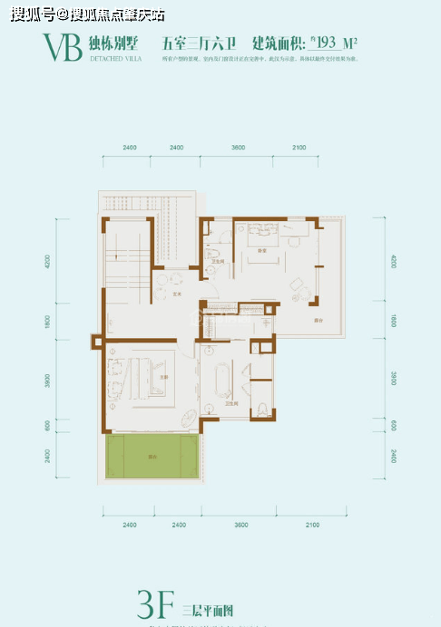 VB 户型:建筑面积 193㎡,五房三厅六卫,房间数量多,可满足大家庭或多客人的居住需求,室外空间大,适合家庭度假、朋友聚会等。
