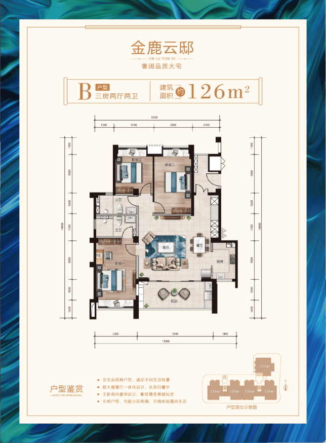 建筑面积约126㎡-133㎡奢阔品质大宅;