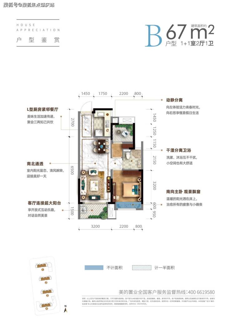 ⑧TOP级产品打造 七大王牌户型、优质园林设计、宜居宜租宜投资 ■ 约67㎡两房两厅一卫 全南向精致居室,更多阳光呵护 户型紧凑简约,精巧实用 动静空间分明,小面积大作为