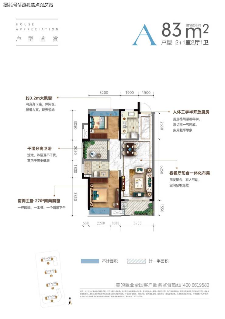 ■ 约83㎡三房两厅一卫 灵动空间设计,广阔观景视野 客餐厅一体化布局,直通大景观阳台 主次卧宽景大飘窗,品质生活悠然自得