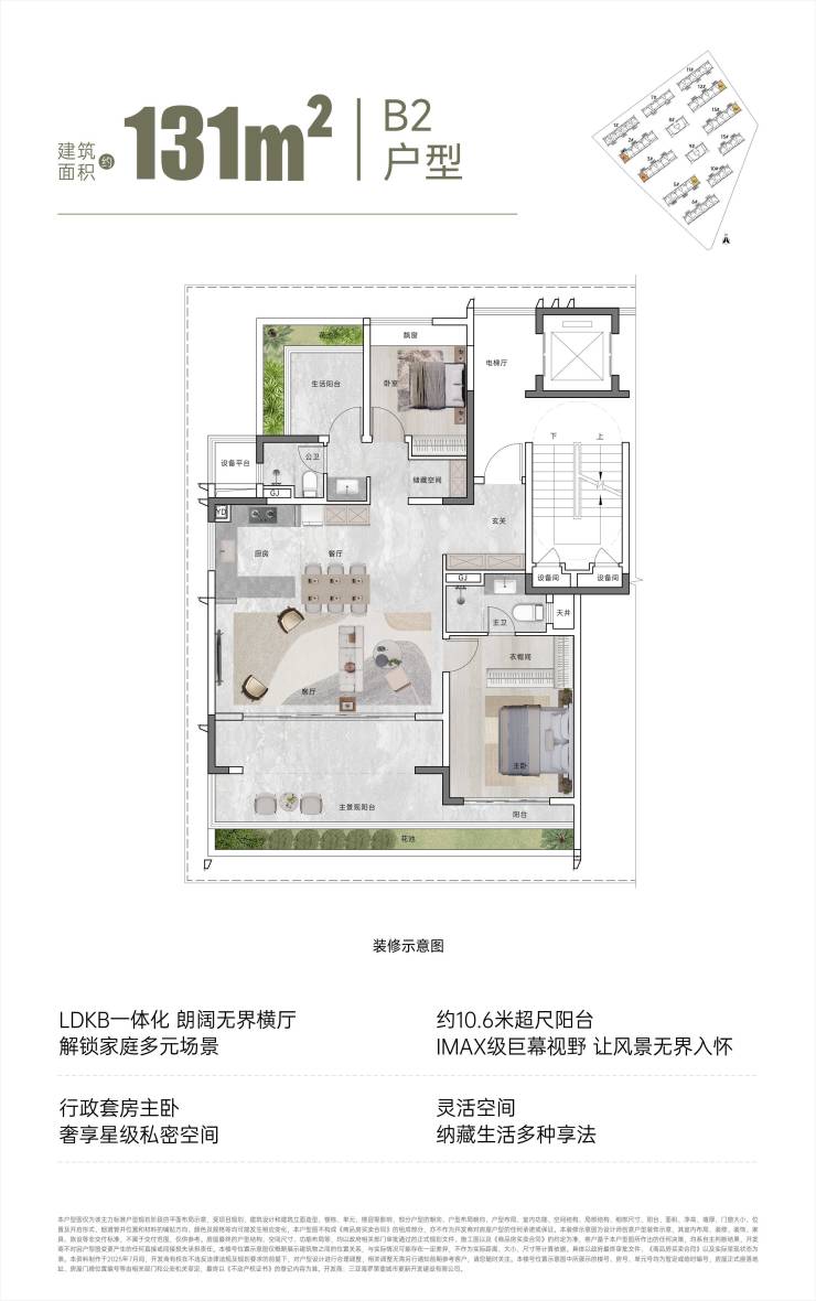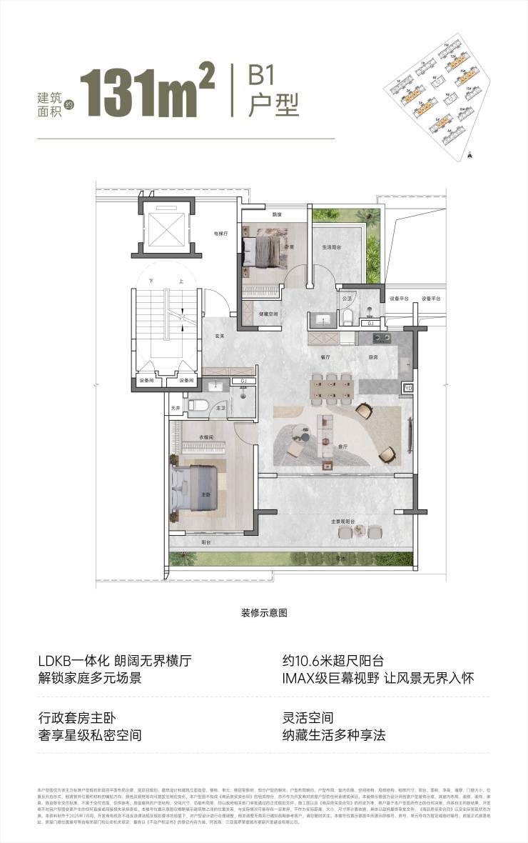 【面积区间】建筑面积约110㎡、131㎡、143㎡、195㎡