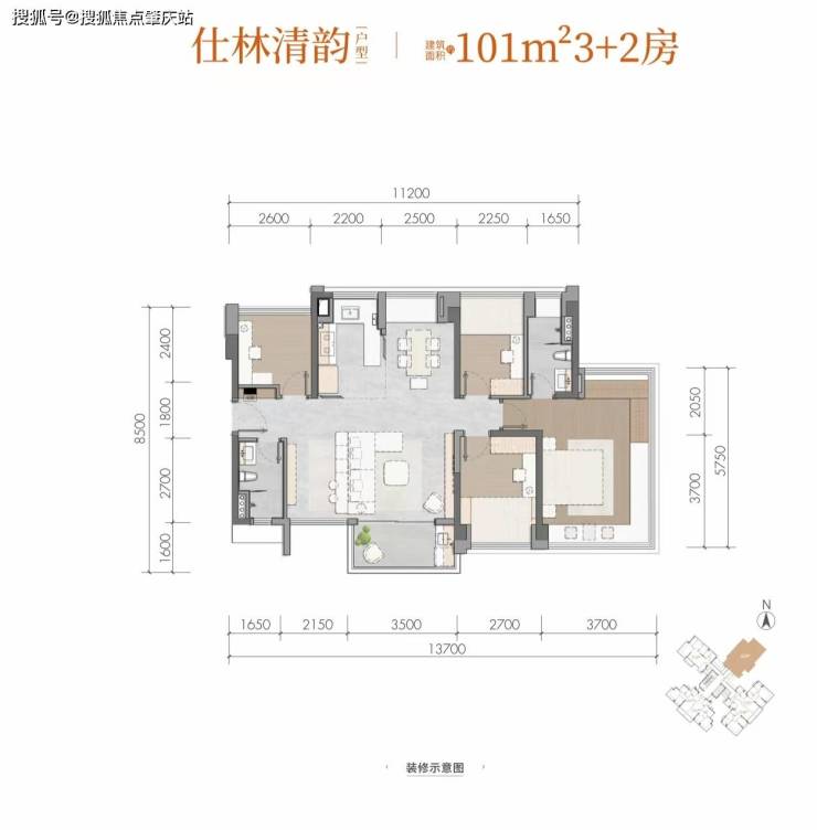 仕林清韵建面约101m²3+2房