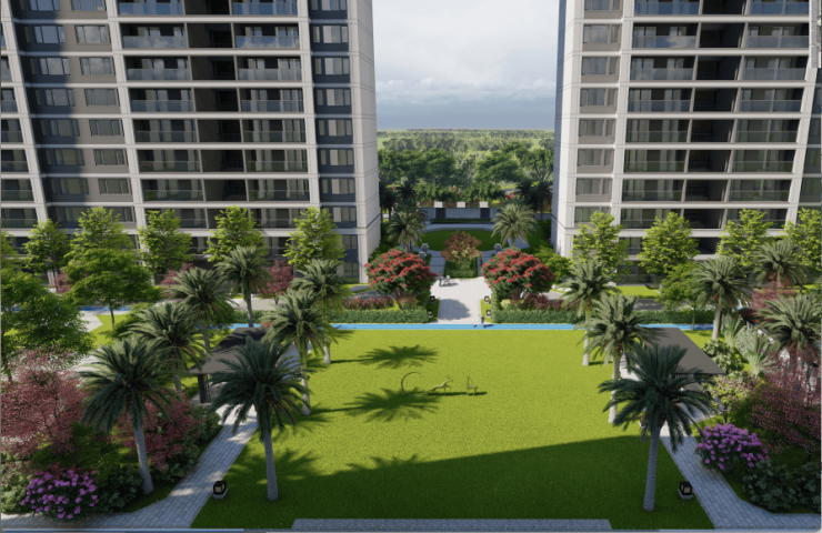 以热带园林点缀归家动线,并形成开阔的公共活动场域,为邻里活动提供高质量社交空间;