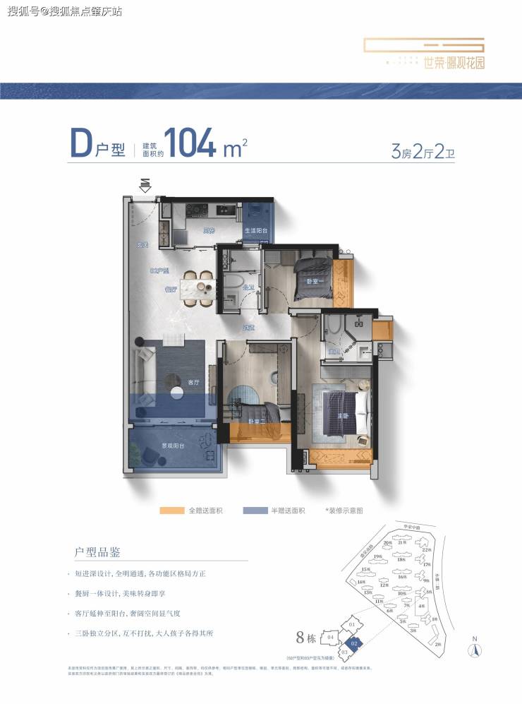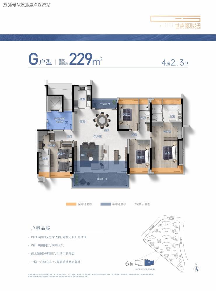 建筑面积约104-229㎡3-4房美学平层,着落其间
