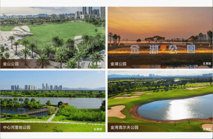 金湾金山公园、金湾金湖公园、金湾中心河湿地公园、金湾海岸线、金湾情侣路、金湾高尔夫