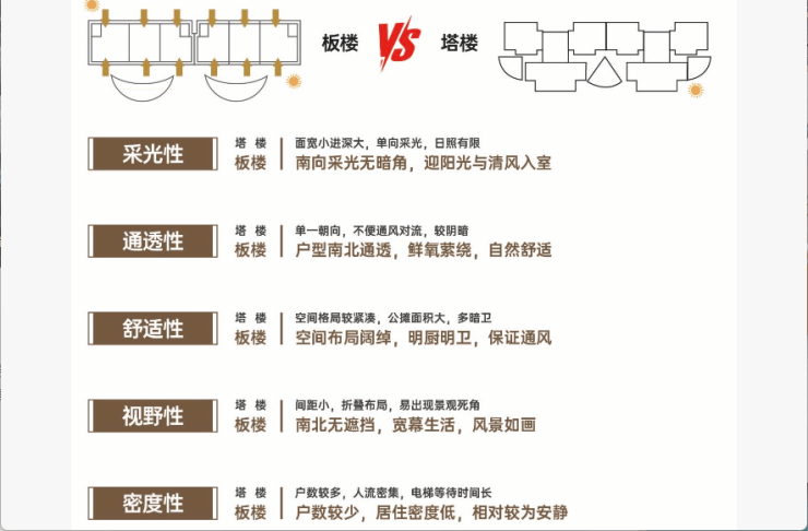 ☑板楼与塔楼的差异,不仅体现在居住舒适度和产品品质上,更关乎其保值程度和转手价格。从市场上来看,相同地段的住房产品,板楼二手房出售价格一般会比塔楼产品更高,且出售速度相对更快。